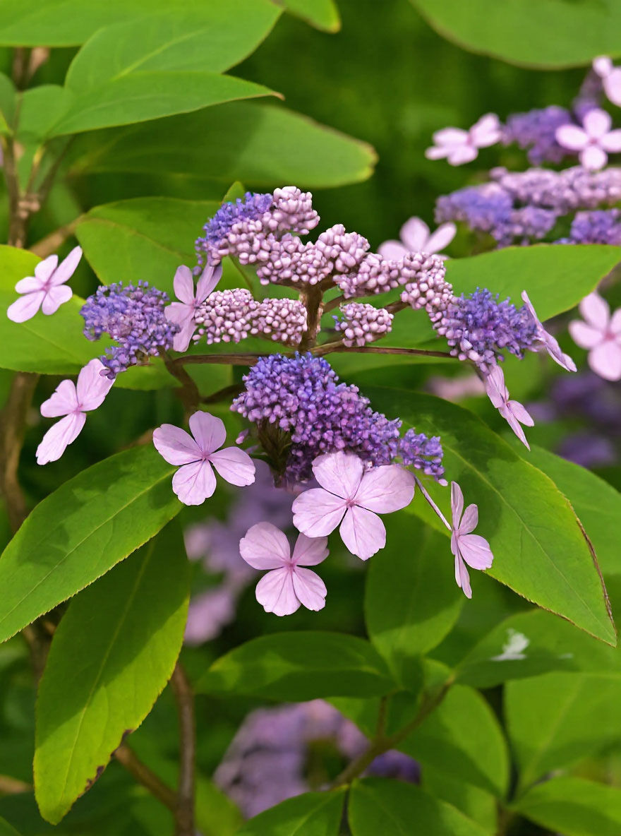 Die Hydrangea villosa (Samthortensie) zeigt sich von Juli bis August mit wunderschöner Blütenpracht. Dabei erscheinen die Randblüten in strahlendem Weiß und umrahmen die blauen Innenblüten....