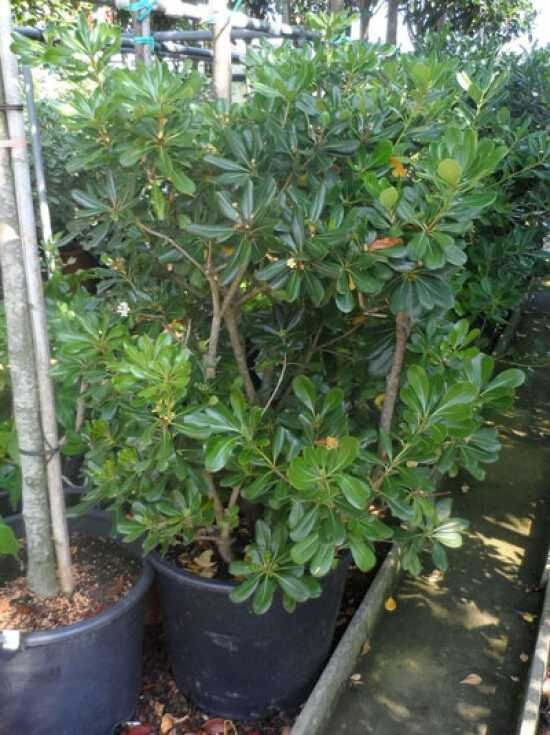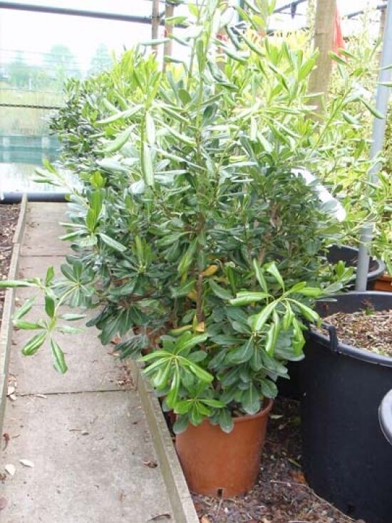 | Eigenschaften: | Der Pittosporum tobira (Chinesischer Klebsame) erweist sich als pflegeleicht, schnittverträglich und kann Temperaturen bis zu -5°C vertragen. Ein tolles Zierelement, das vor allem als Kübelpflanze auf Terrassen, Balkonen oder Hauseinfahrten überzeugt. Die Kübelpflanze kann ab Mitte Mai bis Mitte September an einen sonnigen bis halbschattigen Platz nach draußen gestellt werden. Im Winter sollte für die Pflanze ein heller, frostfreier Wintergarten bevorzugt werden. Ausgepflanzte Exemplare sind in der Jugend sehr frostempfindlich. Daher sollte ein geschützter Standort gewählt werden. Im Winter sollte zusätzlich ein Winterschutz für die Pittosporum tobira/ Chinesischer Klebsame vorgenommen werden.. |