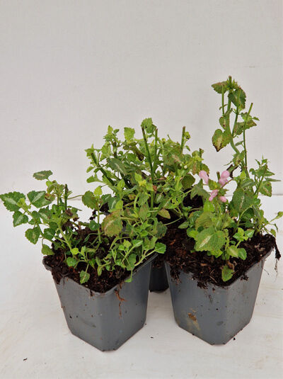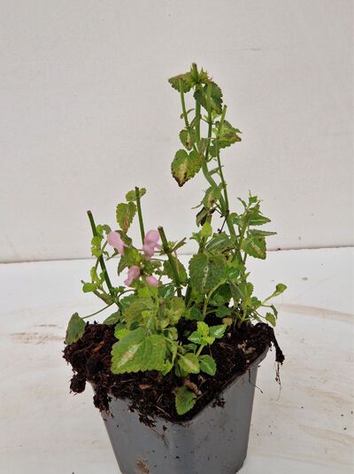 Lamium maculatum 'Shell Pink' / Taubnessel 'Shell Pink' P9 mit rosa Blüten und grünem Laub im Pflanztopf