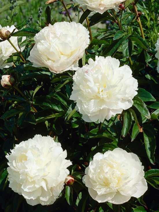 | Eigenschaften: | Die Paeonia officinalis 'Alba Plena' (Bauern Pfingstrose) kann mit ihren wunderschönen großen Blüten in strahlendem weiß tolle sommerliche Akzente in den Bauern-Garten bringen. Damit die volle Blütenpracht bis in den Sommer hinein begeistern kann, sollte die gefüllte Blüte gestützt werden. Auch als Schnittpflanze macht die Pfingstrose eine tolle Figur. Auf frischem und gut durchlässigem Boden gepflanzt an einem sonnigen Standort ist die 'Alba Plena' sehr langlebig und sollte möglichst viele Jahre nicht umgepflanzt werden. Wir empfehlen eine Pflanze pro Quadratmeter zu verwenden. |
