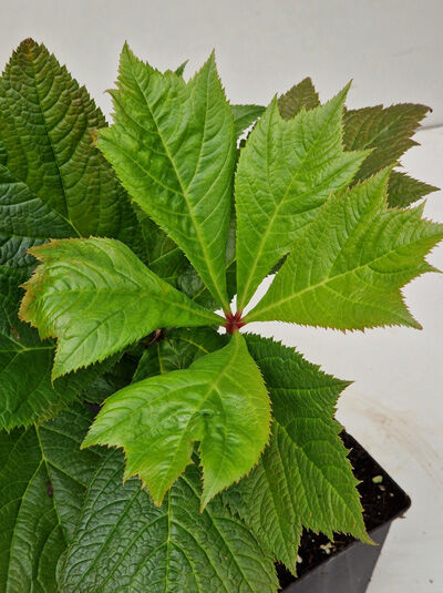 | Name Botanisch: | Rodgersia podophylla 'Rotlaub'. |