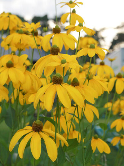 Der Rudbeckia nitida 'Herbstsonne' (Fallschirm-Sonnenhut) besticht mit ihren große, hängenden Blütenköpfen in goldgelb. Bei dem Fallschirm-Sonnenhut handelt es sich um einen Spätsommerblütler,...
