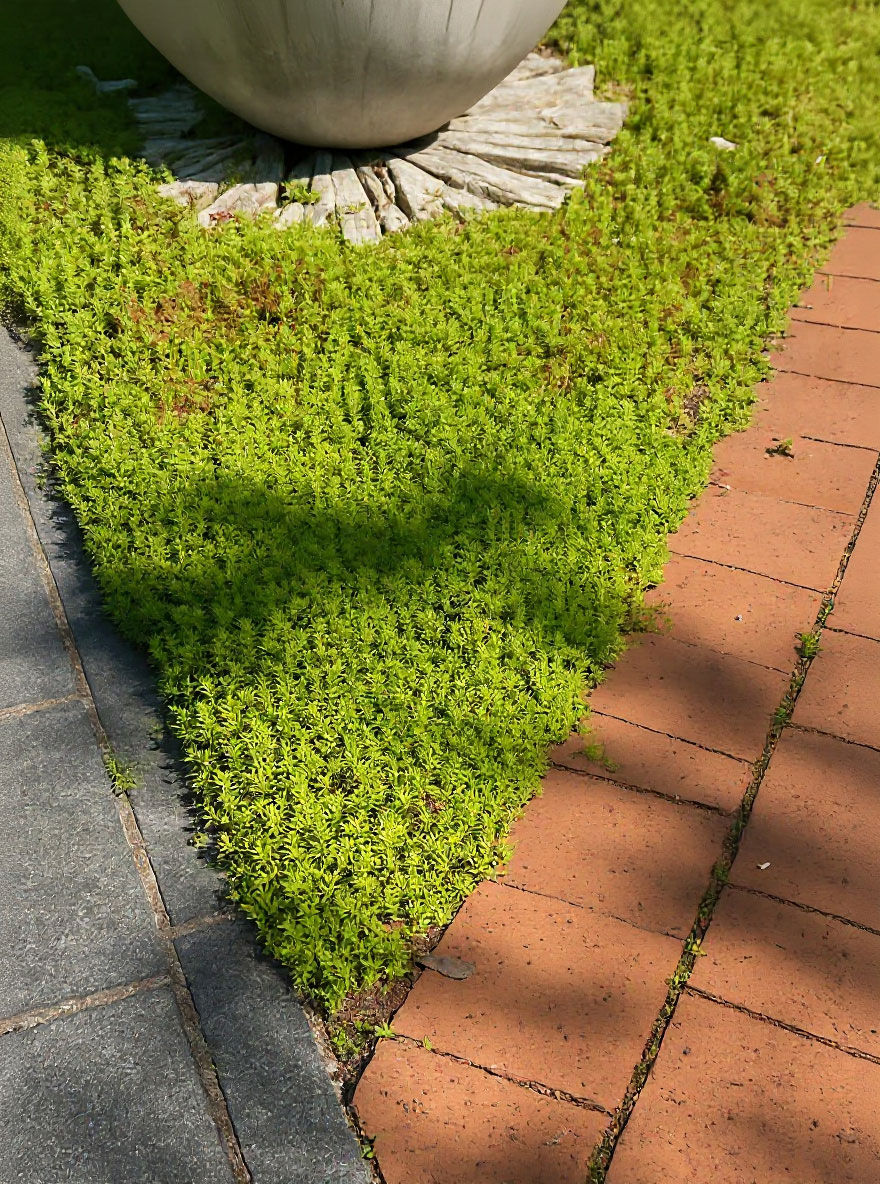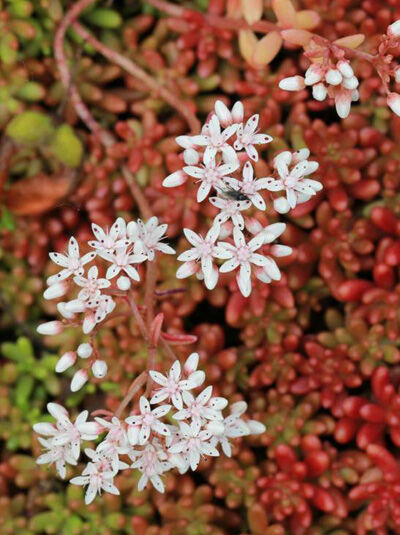 | Eigenschaften: | Der Sedum album 'Coral Carpet' (Rotmoos-Mauerpfeffer) ist eine heimische und wertvolle Wildstaude, das mit seinem bodendeckenden, teppichartigen Wuchs schöne, immergrüne Bestände begrünt, die sich im Winter wunderschön kupferrot verfärben. Im Sommer erscheinen zudem hübsche kleine sternförmige Blüte in strahlendem weiß, die sich toll von dem Blatlaub abheben. Besonders wohl fühlt sich der Rotmoos-Mauerpfeffer an einem sonnigen Standort auf gut durchlässigem und trockenem Untergrund. Diese hübsche Staude wird auch bevorzugt zur extensiven Dachbegrünung und zur Grabgestaltung eingesetzt. |