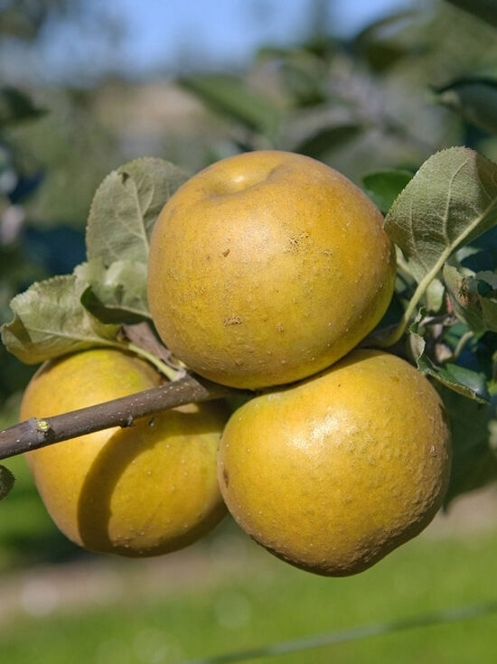 | Eigenschaften: | Der Apfelbaum Malus domestica 'Graue Herbstrenette' (Apfel 'Graue Herbstrenette') findet als Tafelobst, Apfelmus, Kuchenbelag oder zur Herstellung von Apfelsaft Verwendung. Diese Sorte gibt einen sehr hohen Ertrag. Zu den optimalen Befruchtern dieses Apfelbaumes zählen die Sorten 'Alkmene', ' James Grieve' und 'Dülmener Rosenapfel'. |