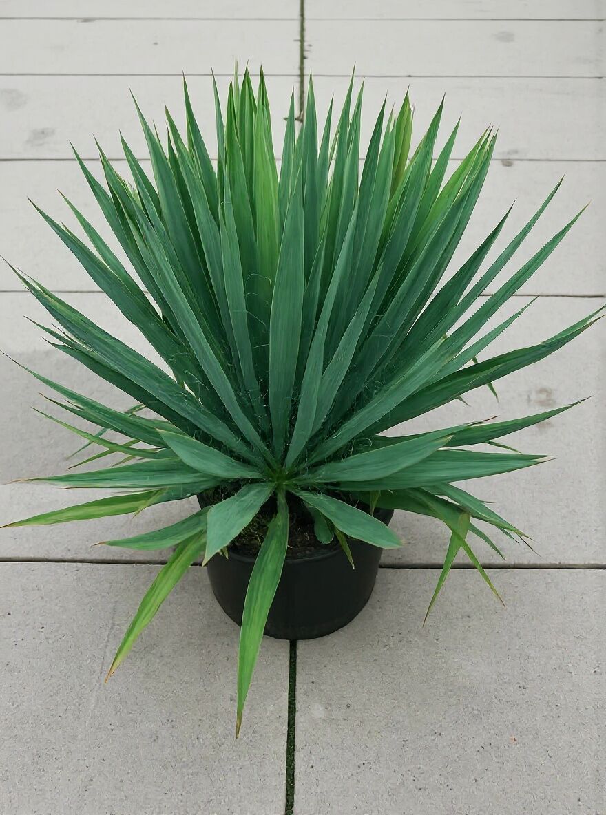 | Blatt: | Immergrün, schmal-länglich bis schwertförmig, glattrandig, am Ende zugespitzt, starr und ledrig, weiße Fäden zwischen den Blättern, grün bis blaugrün, auf der Unterseite rau, 30 bis 70 cm lang und ca. 3 cm breit |