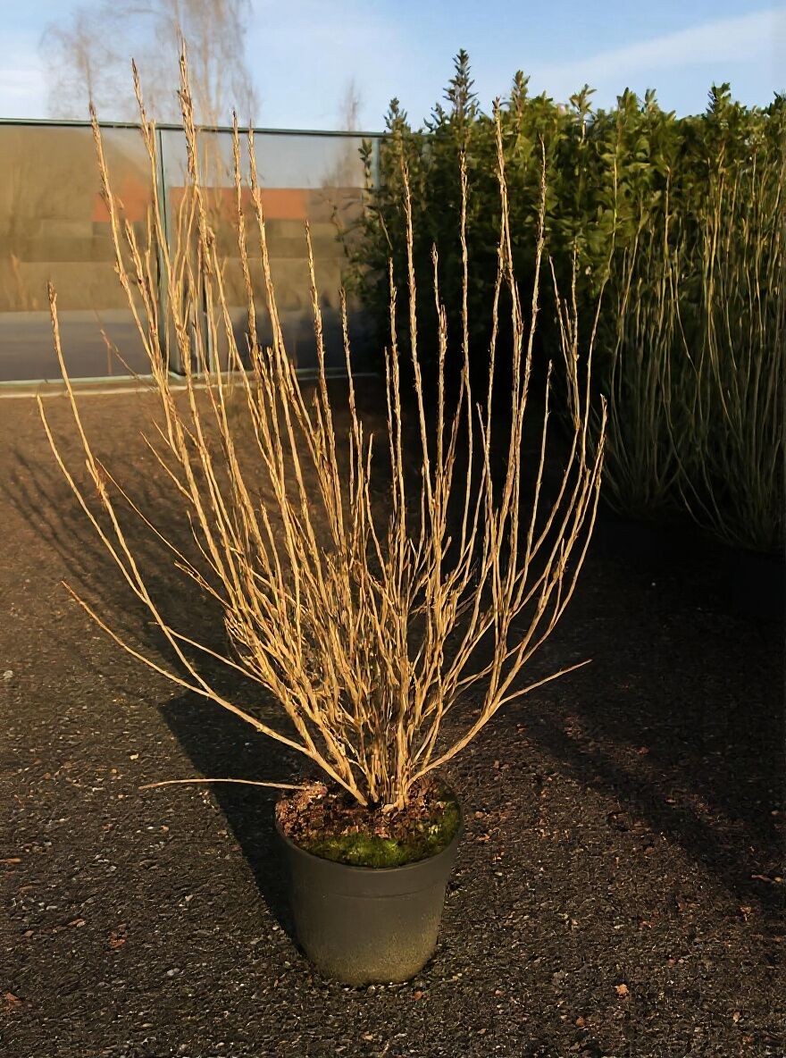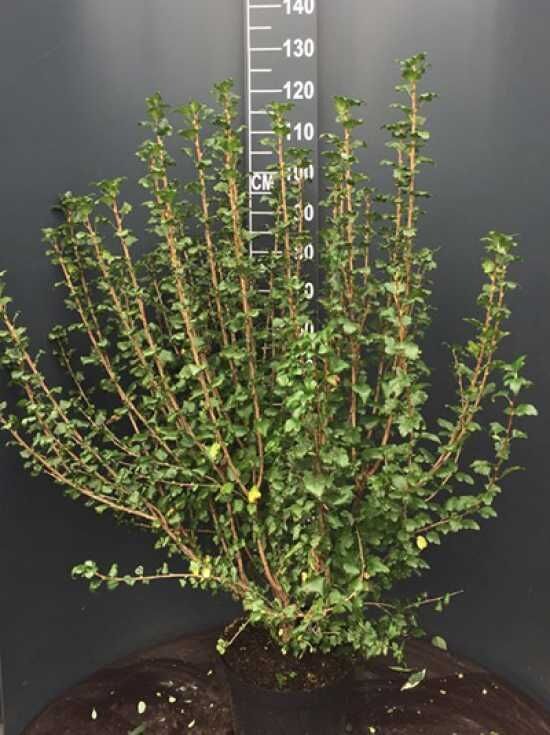 | Wuchs: | Kleiner robuster Strauch, breitbuschig und gut verzweigt, straff aufrecht wachsend, bis zu 2 m hoch und 1,5 m breit |