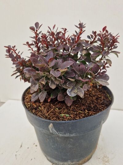 Zwerg-Blut-Berberitze (Berberis thunbergii 'Atropurpurea Nana') 25–30 cm C3 im Topf, dunkelpurpurnes Laub, kompakter Wuchs.
