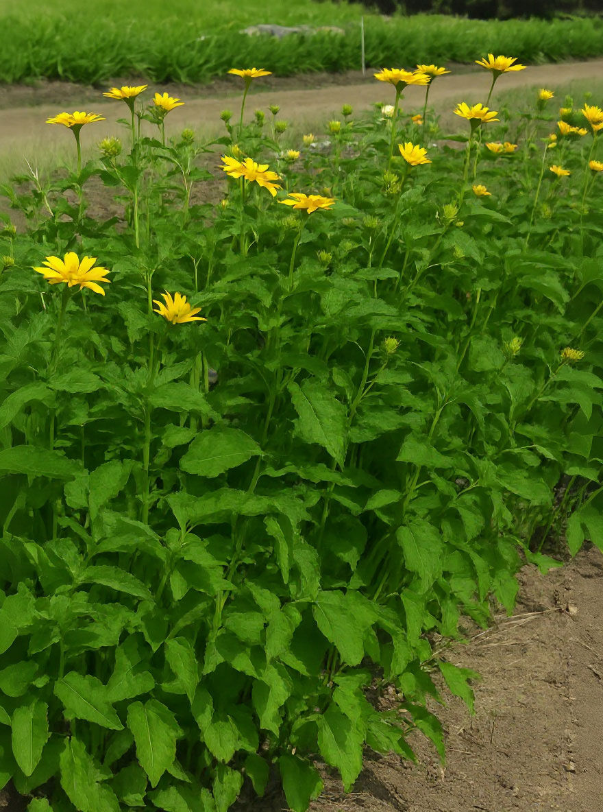 | Blüte: | Leuchtend gelb, körbchenartig, ähneln Sonnenblumen, großblumig, zahlreich. |