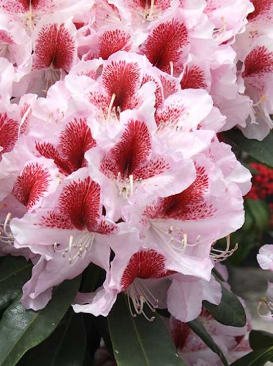 Der Rhododendron Hybride 'Belami ®' (Rhododendron 'Belami') ist eine elegante Rhododendronsorte, die durch eine rosigweiße Blütenpracht, welche mit einem großen kirschroten Fleck gezeichnet ist,...
