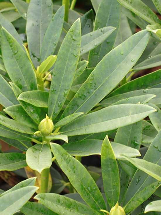 | Blatt: | Immergrün, länglich-elliptisch bis lanzettlich, lang zugespitzt, matt glänzend, sattgrün, bis zu 14 cm lang. |