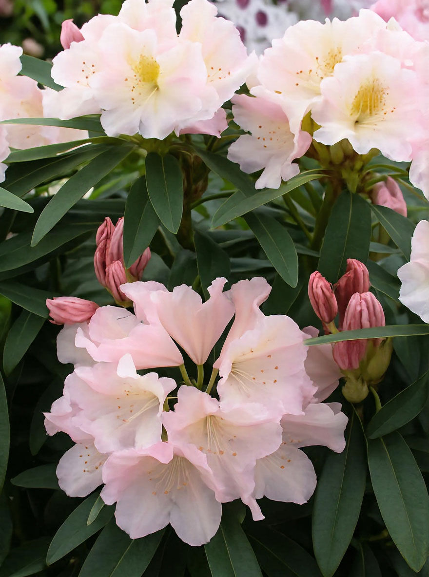 - Rabatten und Beete: Der Rhododendron Hybride 'Mein Schwarm' fügt sich wunderbar in Rabatten und Beete ein. Verwenden Sie ihn als Teil einer gemischten Bepflanzung, um Farbe und Struktur hinzuzufügen.