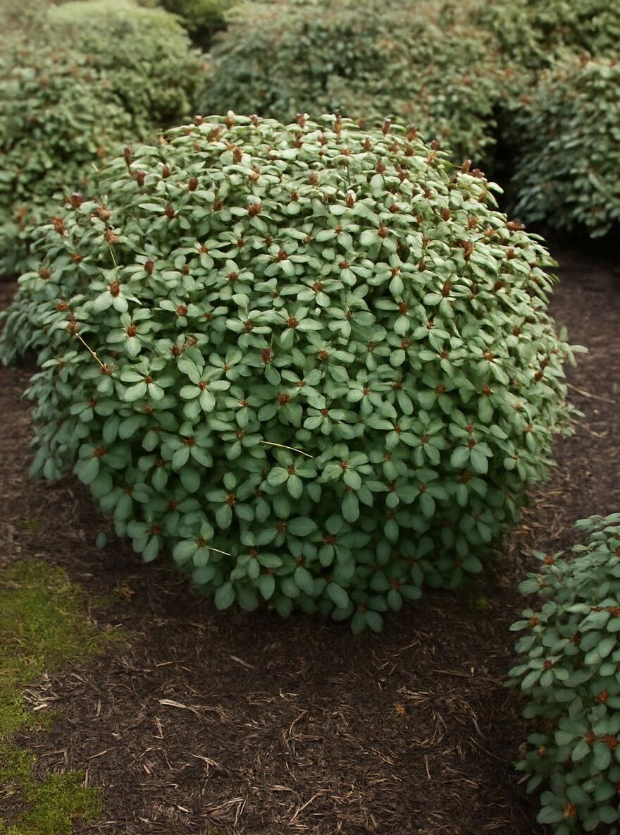 | Wuchs: | Kleiner Strauch, aufrecht, dichtbuschig, halbrund, kugelig, kompakt, ca. 100 bis 120 cm hoch und 120 bis 150 cm breit, langsamwüchsig |