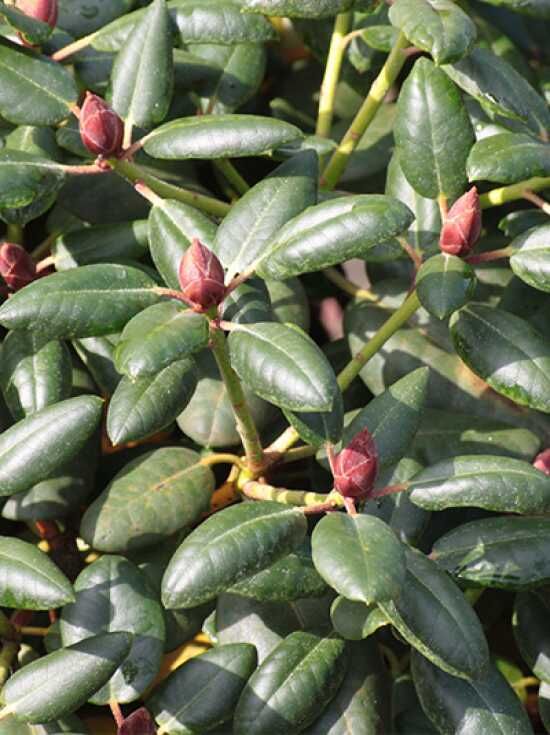 Das Laub von Rhododendron 'Vater Böhlje' ist dunkelgrün und glänzend. Die Blätter sind elliptisch bis länglich, 2 bis 5 cm lang und 3 bis 4 cm breit. Im Herbst verfärben sich die Blätter leicht rötlich, bevor sie im Winter wieder ihre dunkelgrüne Farbe annehmen. Das Laub ist immergrün und bietet das ganze Jahr über eine attraktive Kulisse für die Blüten. Durch regelmäßiges Schneiden kann die Pflanze in Form gehalten werden und ihren Platz im Garten perfekt ausfüllen.