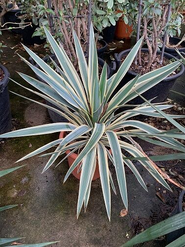 Name Botanisch: Yucca gloriosa 'Variegata'.