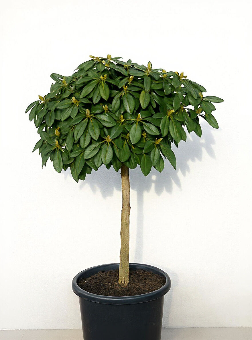 Der Rhododendron yakushimanum 'Polaris' auf Stamm benötigt eine regelmäßige Pflege, um gesund und vital zu bleiben.