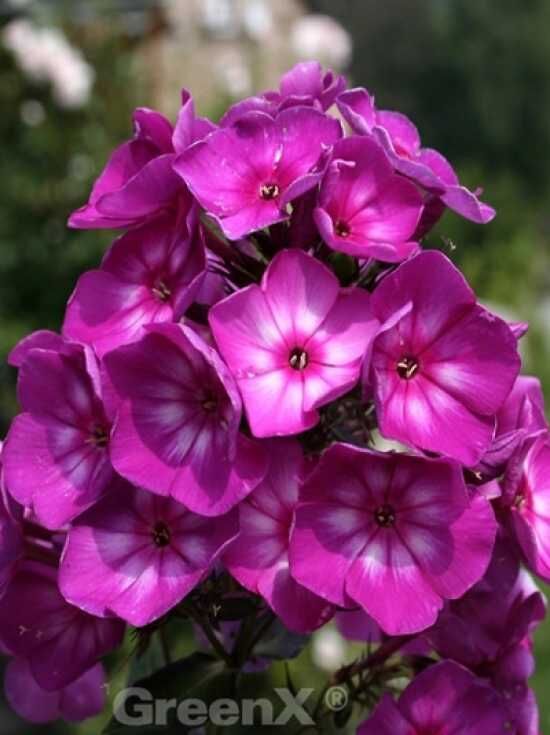 | Blüte: | Tiefviolett, rotes Auge, umrandet von einem weißen Stern, rund bis röhrenförmig, in Dolden zusammen, duftend, Blütendurchmesser 35 mm, zahlreich |