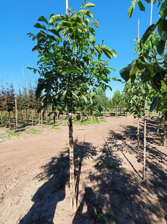 Die Gemeine Walnuss ’Broadview‘ wird bis zu 15 Meter groß und hat eine breitrunde Krone
