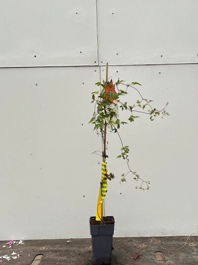 | Wuchs: | Kletterstrauch, aufrecht, dichtbuschig, rankend, gut verzweigt, kompakt, 250 bis 350 cm hoch. |