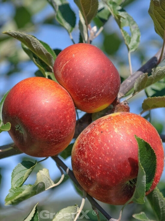 | Frucht: | Mittelgroß bis groß, goldgelb, rot geflammt, süßsäuerlich im Geschmack, sehr saftig mit feinem Aroma |