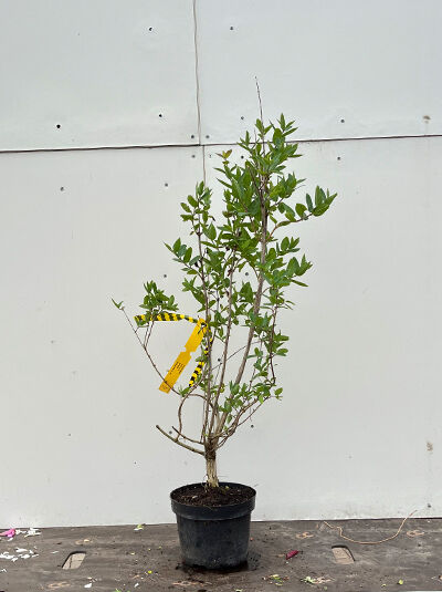 | Wuchs: | Mittelgroßer Strauch, aufrecht, gut verzweigt, waagerechte oder bogig übergeneigte Zweige, buschig, schirmartig bis trichterförmig, ca. 300 cm hoch und ähnlich breit |