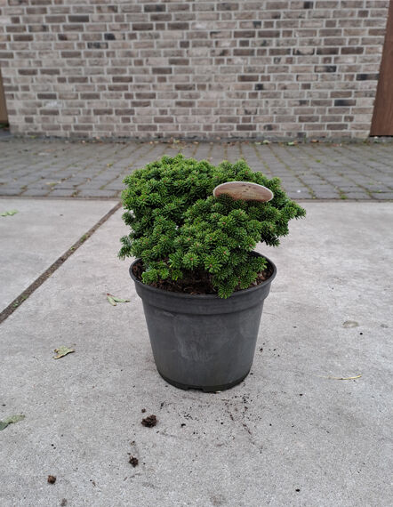 Wuchs: Zwergkonifere, gedrungen, flachkugelig, dichtbuschig, gut verzweigt, kompakt, bis zu 80 cm hoch und ähnlich breit