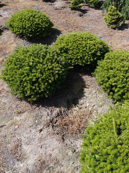 Wuchs: Zwergkonifere, gedrungen, flachkugelig, dichtbuschig, gut verzweigt, kompakt, bis zu 80 cm hoch und ähnlich breit