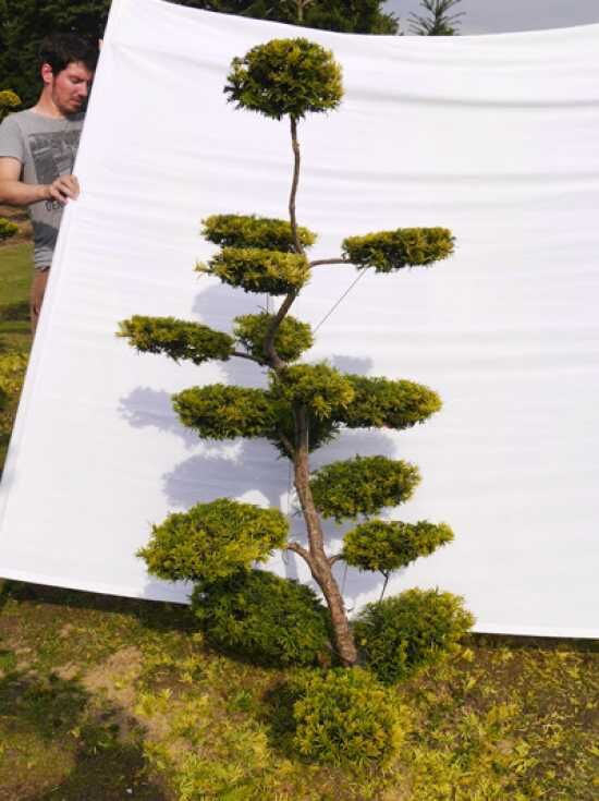 Eigenschaften: | Der Taxus baccata 'Semperaurea' H: 160 cm B: 100 cm / Garten-Bonsai (0087) zeigt sich als ein sehr winterhartes Gehölz. Neben der tollen und auffälligen, gelbgoldenen Färbung überzeugt diese Sorte auch durch die anspruchsvolle Form. Ein schöner Garten-Bonsai, der sowohl robust als auch schnittverträglich ist. Um Akzente im asiatischen Garten zu setzten eine ideale Wahl.. |