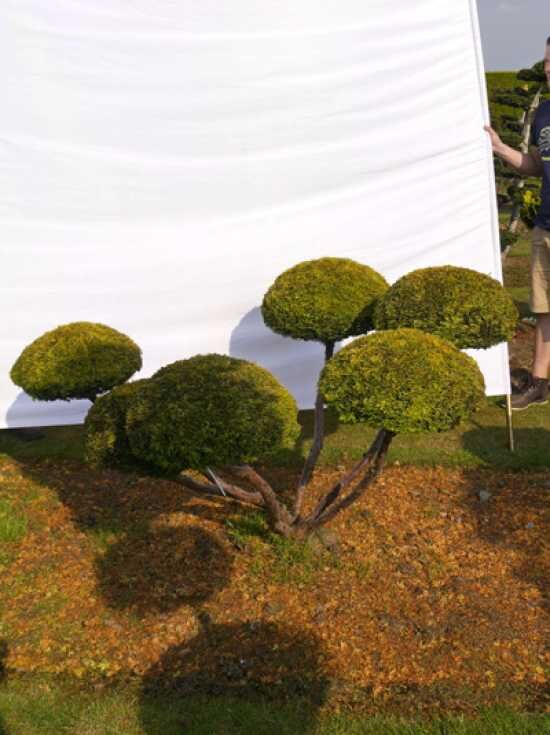 Eigenschaften: | Der Taxus baccata 'Washingtonii' H: 100 B: 160 cm / Garten-Bonsai (0040) ist eine sehr seltene Bonsai-Form. Aufgrund des langsamen Wuchses haben bereits kleine Pflanzen ein beachtliches Alter. Aufgrund des langsamen Wuchses benötigt dieses Formgehölz nur wenig Schnittarbeit. Durch die leichte Verfärbung im Winter ergibt sich ein tolles Farbspiel.. |