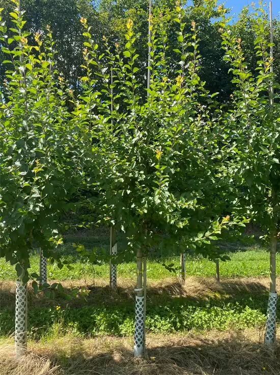 | Blatt: | Sommergrün, länglich-elliptisch, am Ende zugespitzt, gekerbter bis gesägter Rand, leicht glänzend, frischgrün, 3 bis 8 cm lang. |