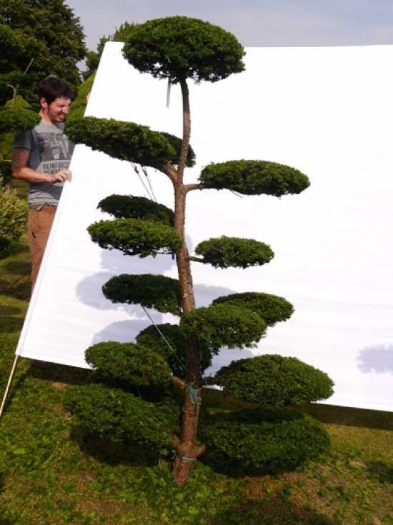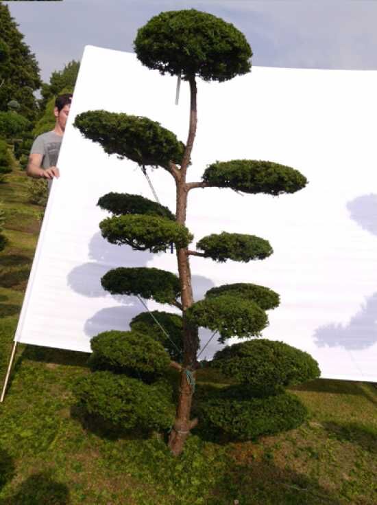 Eigenschaften: | Die Taxus media 'Hillii' H: 210 cm B: 120 cm / Garten-Bonsai (0095) ist eine der gern gewählten Varianten als Basis für Formgehölze. Diese Gartenbonsai tragen im Gegensatz zur Taxus baccata keine Früchte. Absolut schnittverträglich, extrem winterhart und standorttolerant. Ein Formgehölz, dass sich sehen lassen kann.. |