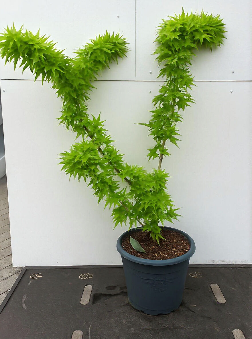 erweist. Die grasgrünen Blätter wachsen direkt anden leicht verdrehten Trieben und überdecken diese komplett. Im Herbst werden Sie sich an dem spektakulären Farbfeuerwerk der Blätter in goldgelben, orangefarbenen und roten Tönen nicht satt sehen können! Um bestens zur Geltung zu kommen, sollte der Grüne Zwerg-Fächer-Ahorn einen solitären und freien Stand im Garten genießen. Perfekt für Beete und Japangärten geeignet, aber auch als Kübelpflanze auf der Terrasse oder dem Balkon ein toller Hingucker! Insgesamt erweist sich dieses Prachtstück als gut winterhart. Sie werden von der unglaublichen Anziehungskraft und Wirkung des Grünen Zwerg-Fächer-Ahorns begeistert sein!