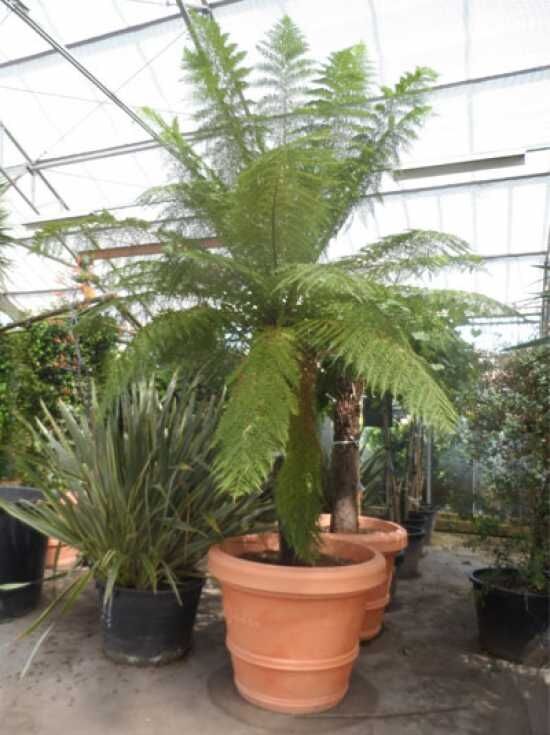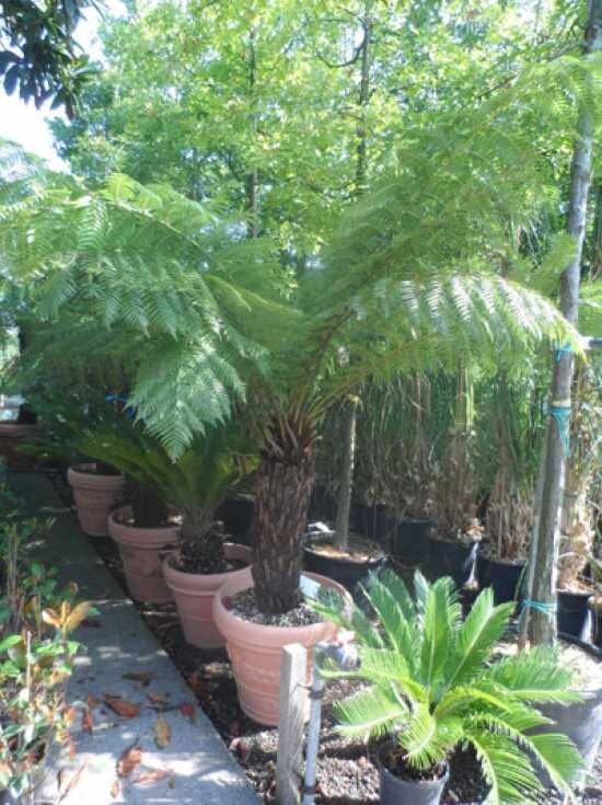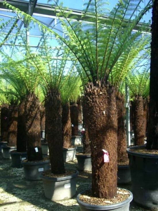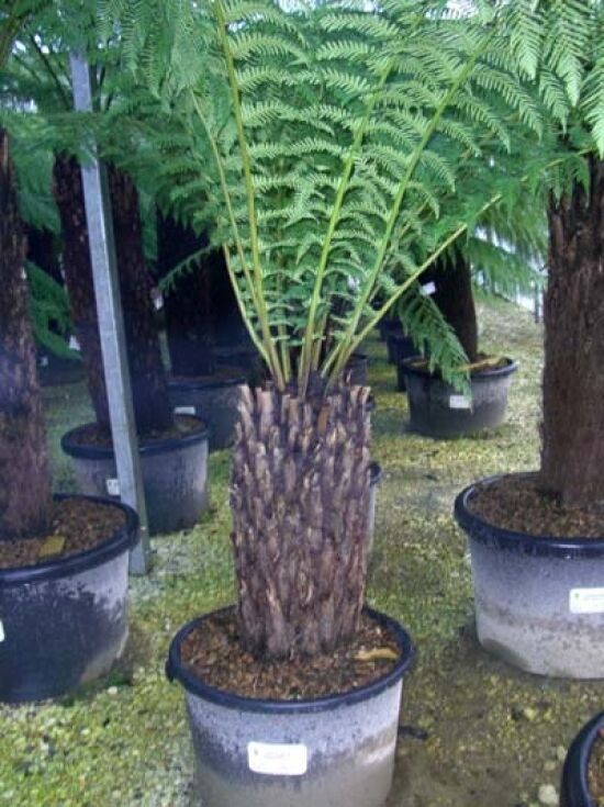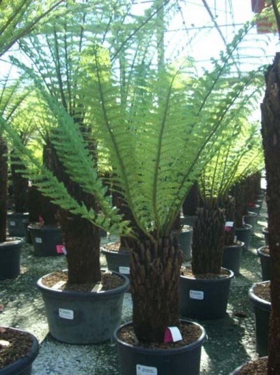| Wuchs: | Farn, baumförmig, aufrecht, palmähnlich, bis zu 10 m hoch und bis zu 5 m breit, langsamwachsend. |