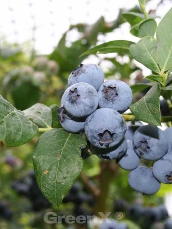 Frucht: | Dunkelblaue Heidelbeeren, bereift, essbar, süßsäuerlich im Geschmack. sehr groß, im August pflückreif. |