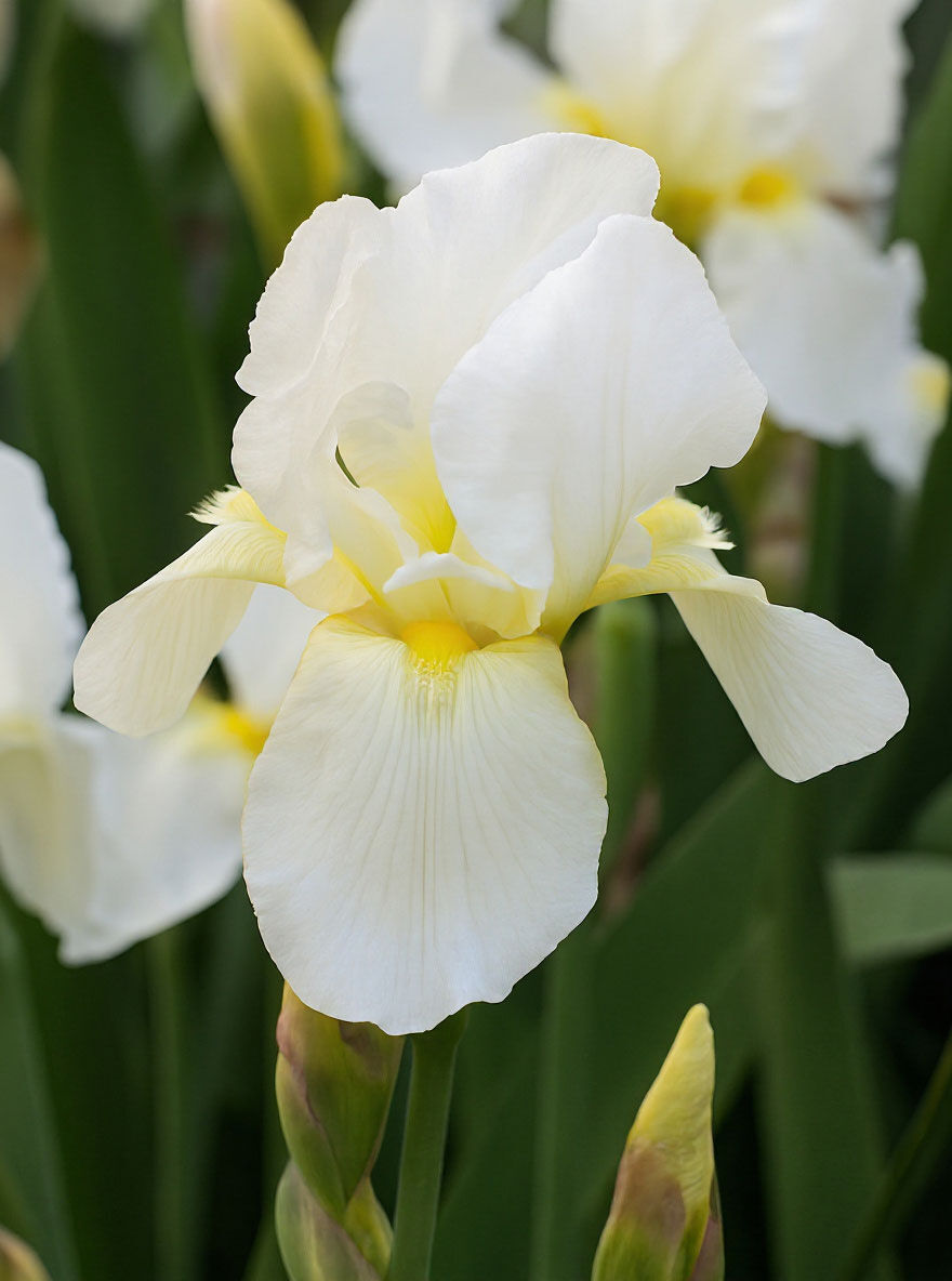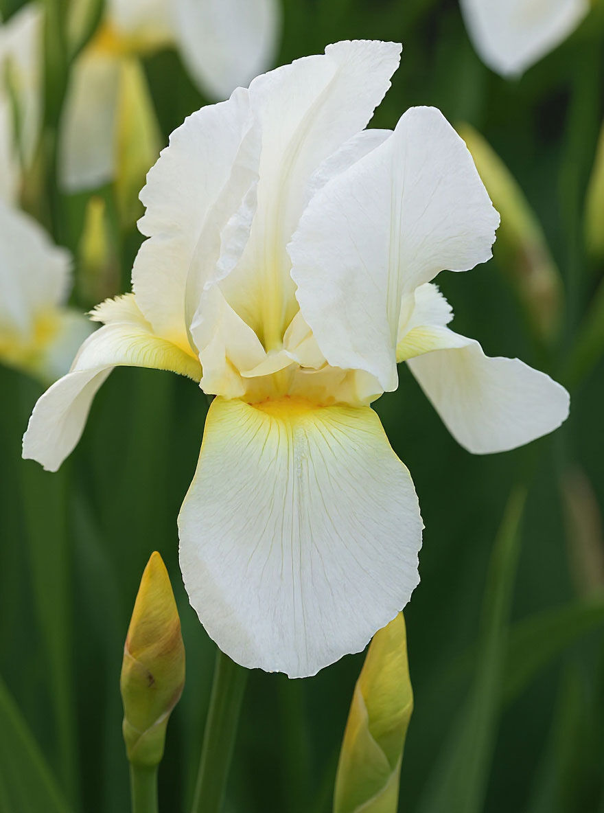 | Eigenschaften: | Die Iris barbata-eliator 'Lugano' (Hohe Bart-Schwertlilie 'Lugano' / Beet-Schwertlilie 'Lugano') ist eine Augenweide für Ihren Garten - wenn Sie sie richtig pflegen. Denn die elegante, verzweigte und elfenbeinfarbene Blüte dieser adretten Irissorte bedarf eines regelmäßigen Rückschnitts der abgeblühten Blütenstände sowie einer Teilung nach der Blüte, wenn die Blühfähigkeit der Staude nachlässt. Außerdem sollten Sie die Hohe Bart-Schwertlilie 'Lugano' an einem sonnigen Standort auf einem trockenen und durchlässigen Boden setzen, damit sich dieses Schmuckstück am besten entfalten kann. Wenn Sie diese Hinweise berücksichtigen, können Sie sich über einen hübschen mehrjährigen Blüher aus der Familie der Schwertliliengewächse freuen, der sich auch als Schnittstaude in der Vase auf dem dekorativen Esstisch gut macht. Die Hohe Bart-Schwertlilie 'Lugano' punktet zudem mit einem zarten Zitronenduft sowie einer zweiten Blüte im September und Oktober. Ein echtes Wunder, welches garantiert auch Sie begeistert. Insgesamt eine robuste Sorte.. |