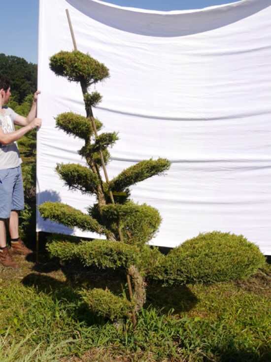 | Eigenschaften: | Der Juniperus media 'Hetzii' H: 200 cm B: 140 cm / Garten-Bonsai (301564) erweist sich als sehr schnittverträglich und robustes Gehölz. Dieser Gartenbonsai ist sehr frosthart, hitzeverträglich, wind- und stadtklimafest und eignet sich aus diesen Gründe hervorragend zum Formgehölz. Eine sehr schöne und pflegeleichte Bonsai-Variante.. |