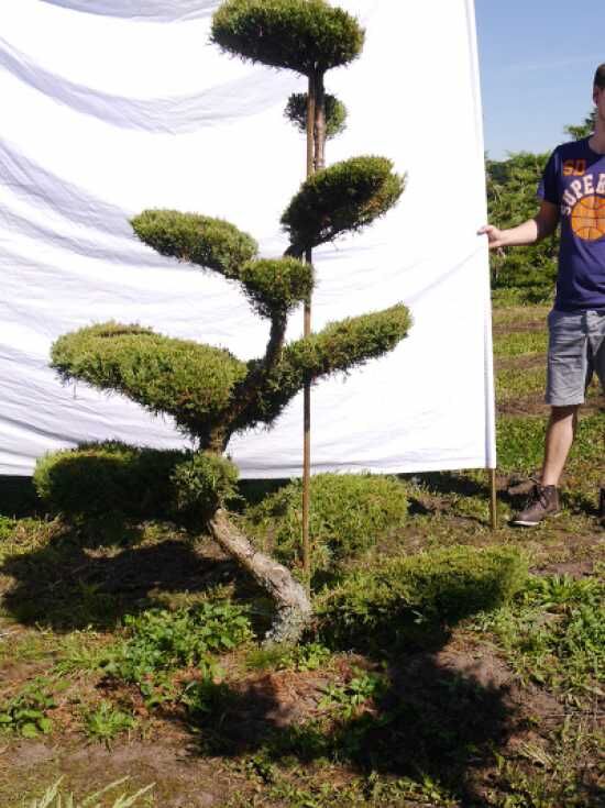 | Eigenschaften: | Der Juniperus media 'Hetzii' H: 190 cm B: 150 cm / Garten-Bonsai (301555) erweist sich als sehr schnittverträglich und robustes Gehölz. Dieser Gartenbonsai ist sehr frosthart, hitzeverträglich, wind- und stadtklimafest und eignet sich aus diesen Gründe hervorragend zum Formgehölz. Eine sehr schöne und pflegeleichte Bonsai-Variante.. |