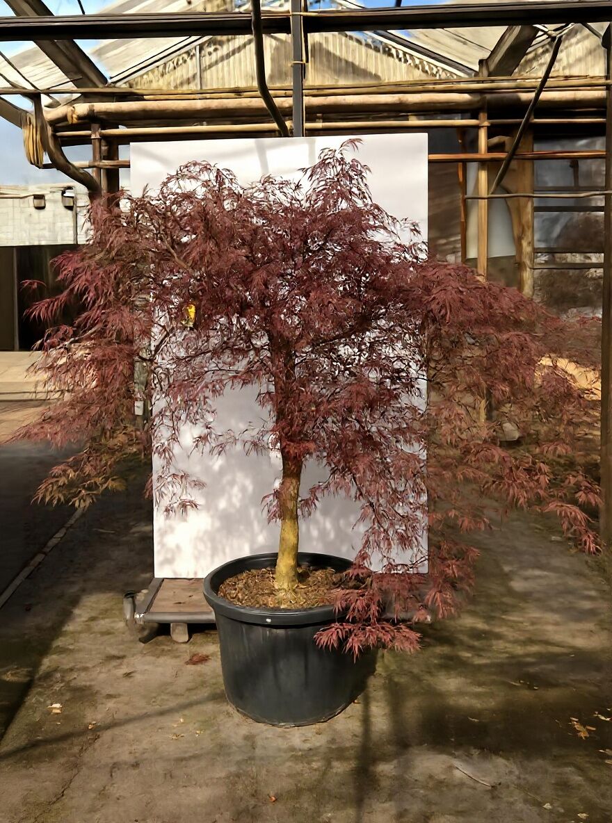 - Acer palmatum ‘Tamukeyama‘ auf Stamm wächst malerisch und wird bis zu 2,5m hoch