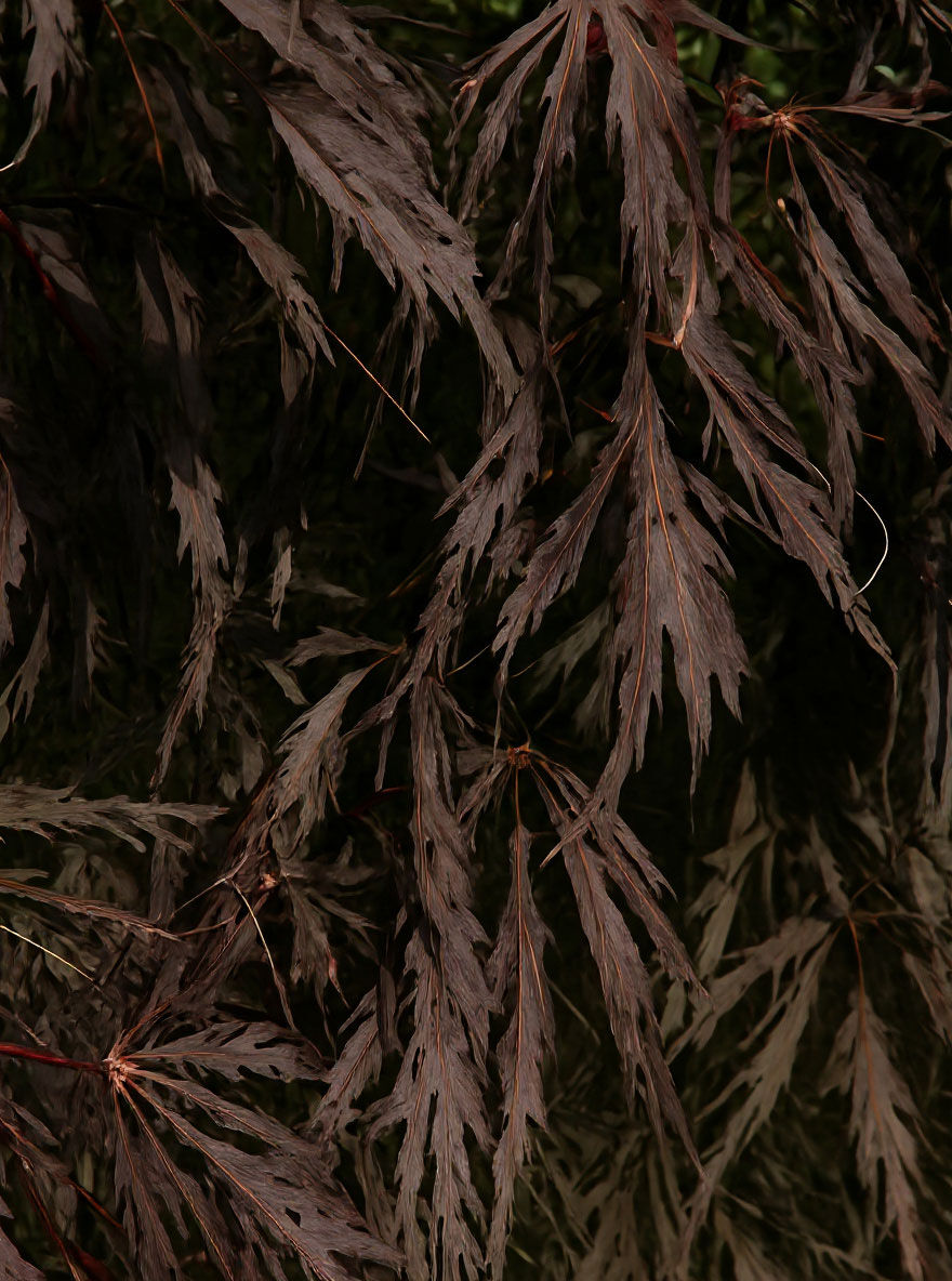 Das attraktive Blatt des Fächerahorns ‘Tamukeyama‘ treibt im Frühjahr aus und schmückt die Krone mit seiner exotischen Optik. Die einzelnen Blätter sind fünf- bis siebenlappig, tief geschlitzt mit ungewöhnlich schmalen Blattlappen und einem gezahnten Blattrand. Sie beleben den Garten bereits zu Beginn des Gartenjahres mit einer tiefroten Farbgebung und funkeln malerisch im Sonnenschein. Das extravagante Laub hält seine intensive Rotfärbung auch im Sommer und macht den Acer palmatum ‘Tamukeyama‘ auf Stamm zu einem echten Highlight. Der glamouröse Anblick verleiht dem deutschen Garten einen Hauch von Fernost und entführt den Betrachter für einen kurzen Moment in die Natur Ostasiens.