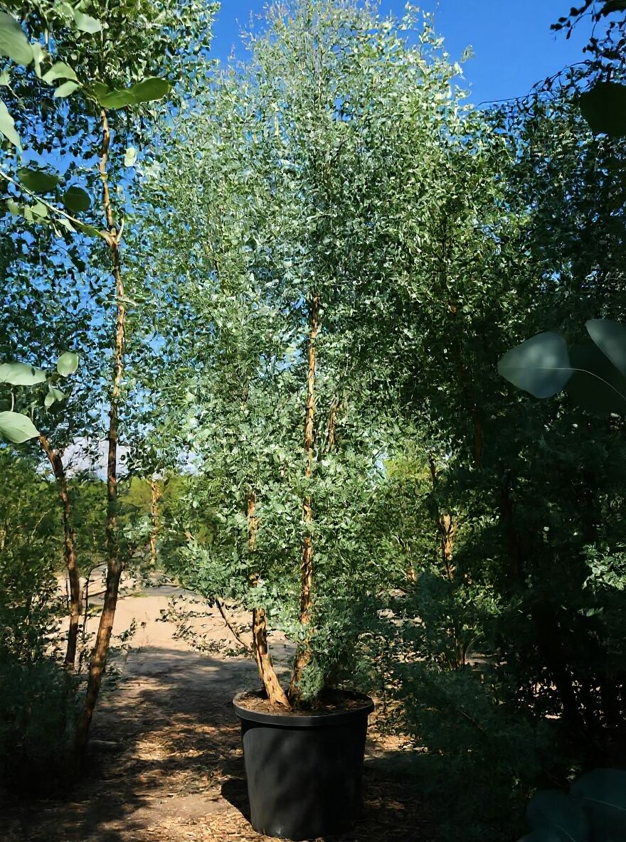 | Rinde: | Glatte und weißgrüne Borke, abblätternd, unter der Rinde frischgelb bis graugrün oder rosa bis orange |