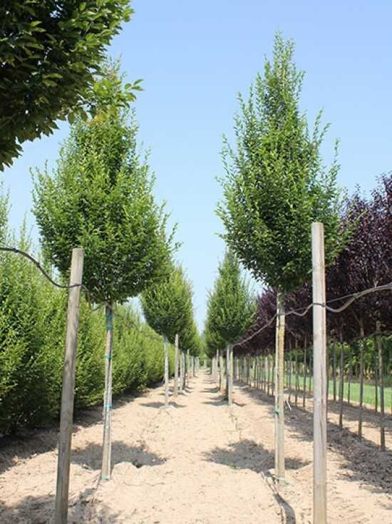 Wuchs: | Mittelgroßer Baum mit pyramidaler, geschlossener und kompakter Krone, durchgehender Stamm, 10 bis 15 m hoch und 4 bis 6 m breit. |