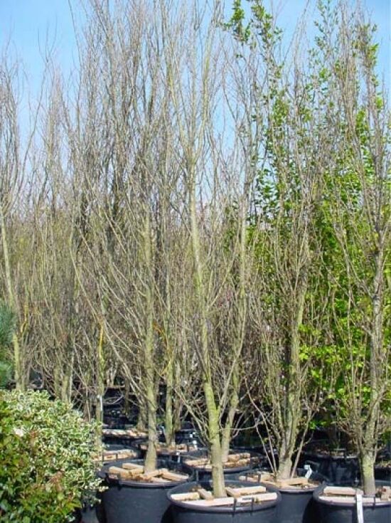 Wuchs: Kleiner Baum, erst säulenförmig, später rundlich, Äste aufrecht wachsend, dicht geschlossen, 8 bis 10 m hoch und 3 bis 5 m breit.