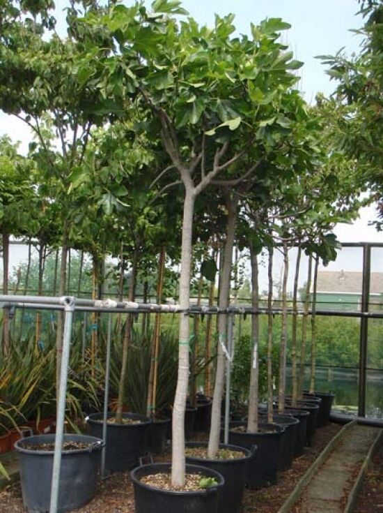 Eigenschaften: Der Ficus carica (Echter Feigenbaum / Feige) ist pflegeleicht. Gerne wird er als Kübelpflanze gesetzt. Eine Besonderheit sind bei dieser Sorte die drei Blütezeiten, wodurch man dreimal im Jahr schmackhafte Früchte ernten kann. Die Feige wird sowohl zum Frischverzehr als auch als Trockenobst angeboten. Die ausgepflanzten Exemplare eignen sich nur in klimatisch günstigen und wintermilden Lagen. In den Wintermonaten benötigt die Feige einen Winterschutz. In raueren Lagen empfehlen wir eher die Kübelbepflanzung mit einen frostfreien Überwinterung im Kalthaus.