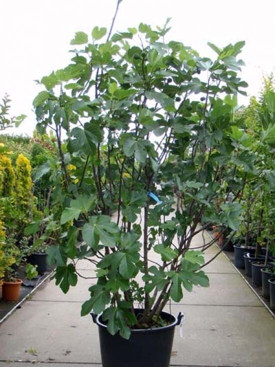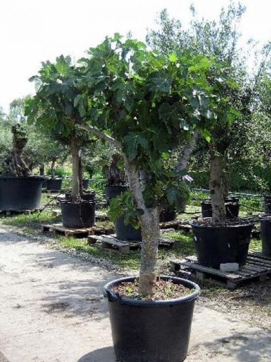 schmackhafte Früchte ernten kann. Die Feige wird sowohl zum Frischverzehr als auch als Trockenobst angeboten. Die ausgepflanzten Exemplare eignen sich nur in klimatisch günstigen und wintermilden Lagen. In den Wintermonaten benötigt die Feige einen Winterschutz. In raueren Lagen empfehlen wir eher die Kübelbepflanzung mit einen frostfreien Überwinterung im Kalthaus.