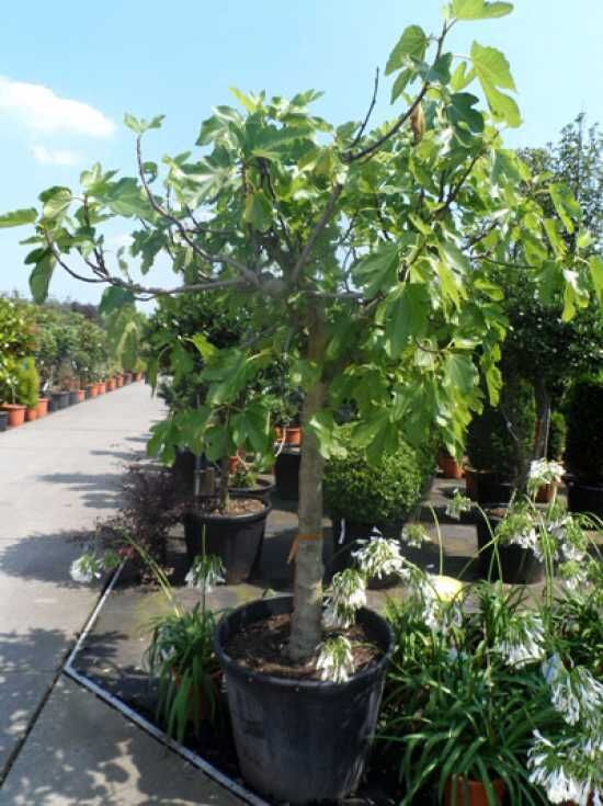 schmackhafte Früchte ernten kann. Die Feige wird sowohl zum Frischverzehr als auch als Trockenobst angeboten. Die ausgepflanzten Exemplare eignen sich nur in klimatisch günstigen und wintermilden Lagen. In den Wintermonaten benötigt die Feige einen Winterschutz. In raueren Lagen empfehlen wir eher die Kübelbepflanzung mit einen frostfreien Überwinterung im Kalthaus.