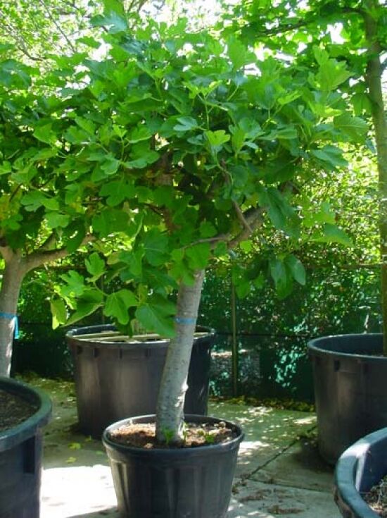 schmackhafte Früchte ernten kann. Die Feige wird sowohl zum Frischverzehr als auch als Trockenobst angeboten. Die ausgepflanzten Exemplare eignen sich nur in klimatisch günstigen und wintermilden Lagen. In den Wintermonaten benötigt die Feige einen Winterschutz. In raueren Lagen empfehlen wir eher die Kübelbepflanzung mit einen frostfreien Überwinterung im Kalthaus.