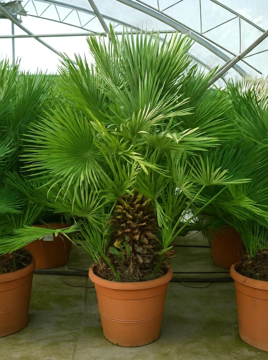 | Eigenschaften: | Die Chamaerops humilis (Europäische Zwergpalme) ist eine tolle Zierpflanze, die sich als robust erweist und sich daher wunderbar als Palme für den Garten eignet. Auch als Kübelpflanze für Terrasse oder Balkon sehr dekorativ. Wird sie in der Wohnung gehalten, bleibt die Blüten- sowie Fruchtbildung aus. Die Kübelpflanze kann ab Mitte Mai bis Mitte September an einen sonnigen Platz nach draußen gestellt werden. Für die Überwinterung empfehlen wir ein frostfreien, hellen Kalthaus (gemäßigt temperiertes Gewächshaus) oder im Wintergarten.. |