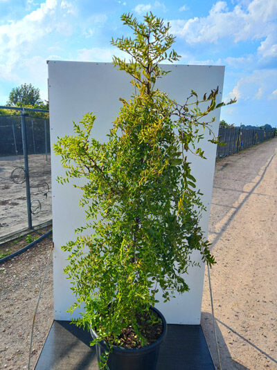 | Wuchs: | Großer Strauch bis kleiner Baum, dichtbuschig und gut verzweigt, bis zu 10 m hoch und 3 m breit |