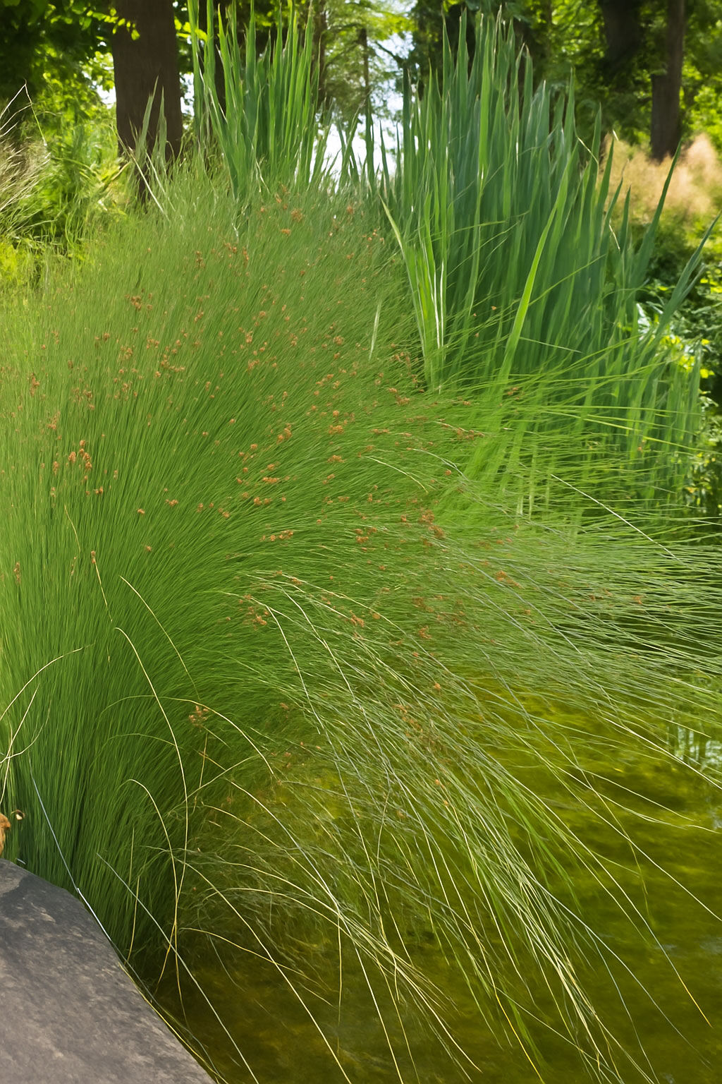 | Eigenschaften: | Die Juncus ensifolius (Zwerg-Binse) ist eine schöne Möglichkeit das Ufer ihres Gartenteichs zu begrünen. Mit ihren leicht überhängenden, sattgrünen Halmen verschafft sie jedem Garten eine sehr natürliche Atmosphäre. Ihre kleinen, braunen, büschelartigen Blütenstände wirken wie Farbtupfer auf der üppig bewachsenen Fläche. Es können bis zu 7 Exemplare pro Quadratmeter gepflanzt werden, wobei ein Abstand von 20 bis 30 cm einzuhalten ist. Die Juncus ensifolius ist sehr wuchsfreudig und belohnt so jeden Gärtner mit ihrer schnellen Ausbreitung und der Begrünung des Ufers. Sie kann auch bis zu 15 cm unter der Wasseroberfläche angepflanzt werden und bietet mit ihren herausragenden Halmen eine besonders ansprechende Optik. Unser Tipp: Schneiden sie die Zwerg-Binse im Herbst zurück. |