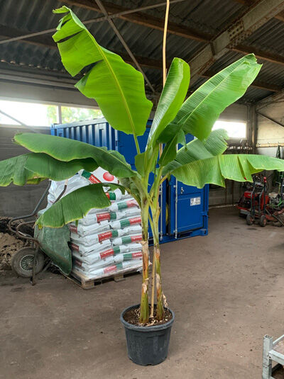 Musa basjoo (Winterharte Banane, Japanische Faserbanane) im Topf, ca. 200–250 cm, C90, mit mehreren grünen Blättern