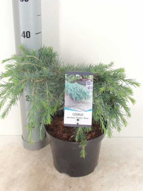 Die Züchtung 'Feelin Blue' ist eine Zwergform der Himalaya-Zeder und eignet sich daher hervorragend auch für die Pflanzung in Privatgärten. Sie wächst langsam und erreicht lediglich eine Endhöhe von bis zu 1 Meter, bei einer deutlich ausgeprägteren Kronenbreite von 2 bis 3 Metern. Die Äste streben in die Breite und bilden eine breitbuschige, kompakte Baumkrone, deren Zweige leicht herabhängen und dem Strauch eine romantische Wirkung verleihen. Er verschönert jeden Garten mit seiner exotischen Ausstrahlung und erweist sich garantiert als stilvolle Bereicherung.